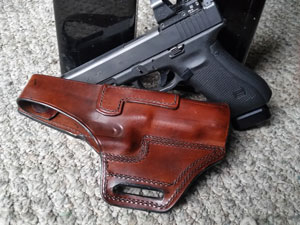 We have five different holsters available for the FN 5.7 I.O.M and U.S.G. The Vertical High Ride, Canted Hi Rise Tail Loop, Sakelson I.W.B., Rangemaster Canted, and Tactical Light Holster. We also make mag carriers for both models as well. We have just added a new holster to the website. The Tom Givens Speed Draw. Be sure to CHECK IT OUT! We are a approved holster maker for Les Baer's Monolith line of guns and for Dawson Precision!